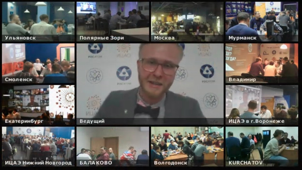 На площадке ИЦАЭ Смоленска в интеллектуальное состязание в онлайн режиме вступили команды работников Смоленской АЭС «Три тысячных» и «ОЯБ», которые должны были «взять» 30 вопросов. Вел игру Никита Старун, член самой молодой команды «Что? Где? Когда?»